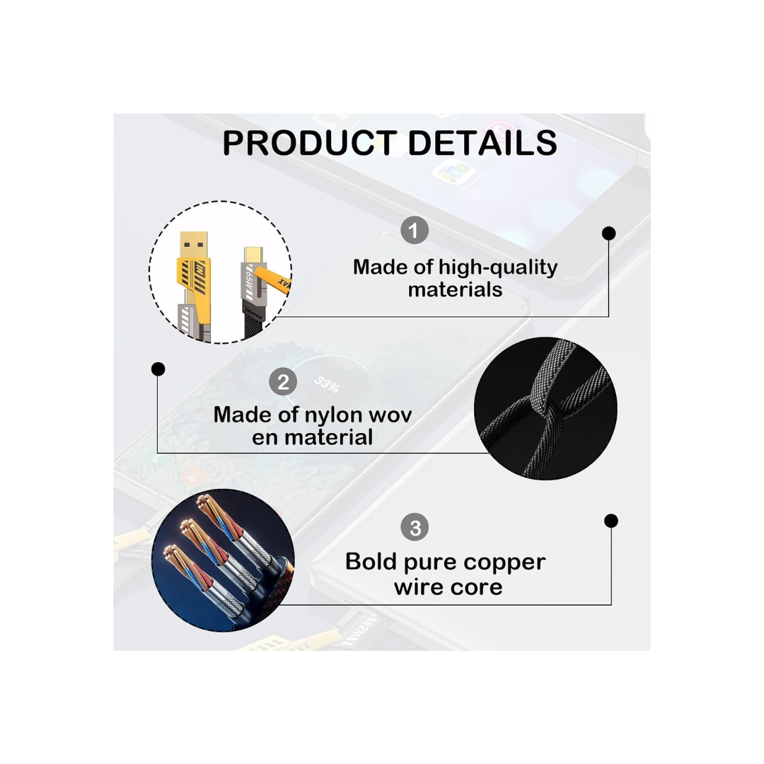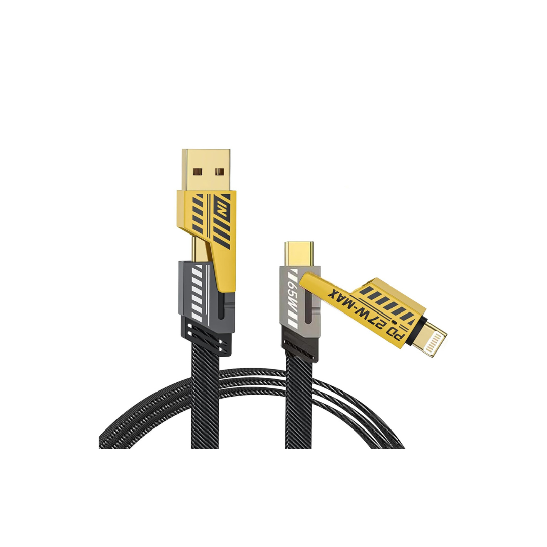 The ZENOVA X 4-in-1 universal charging cable delivers fast and efficient charging, supporting both PD3.0 and QC3.0 protocols. The USB-C output provides up to 65W, while the PD port offers up to 27W, making it ideal for high-power devices. Engineered with 5-core low-loss tinned copper wires, it ensures faster and more stable charging performance. This cable can charge compatible devices like the latest iPhone 15 series and Galaxy models up to 50% in just 30 minutes. (Note: Charging speed may vary based on your device and power adapter.)