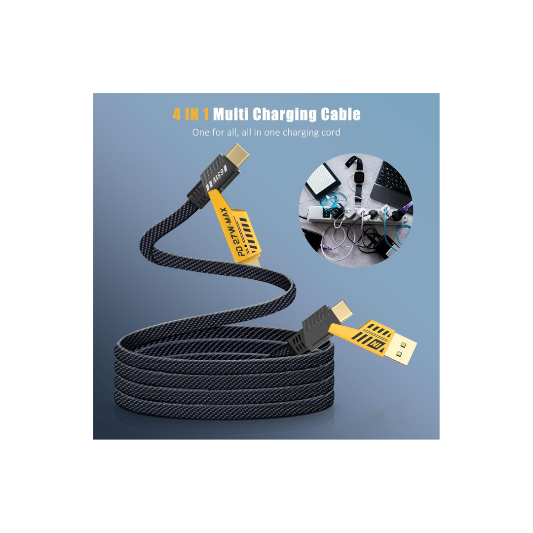 The ZENOVA X 4-in-1 multi USB cable offers four versatile connector combinations, making it a reliable charging solution for home, office, travel, car, events, parties, and shared spaces like cafés or coworking areas. Its wide compatibility ensures you're always ready to charge different devices—without needing multiple cables or extra chargers. Save time, save space, and cut costs with this all-in-one charging essential.