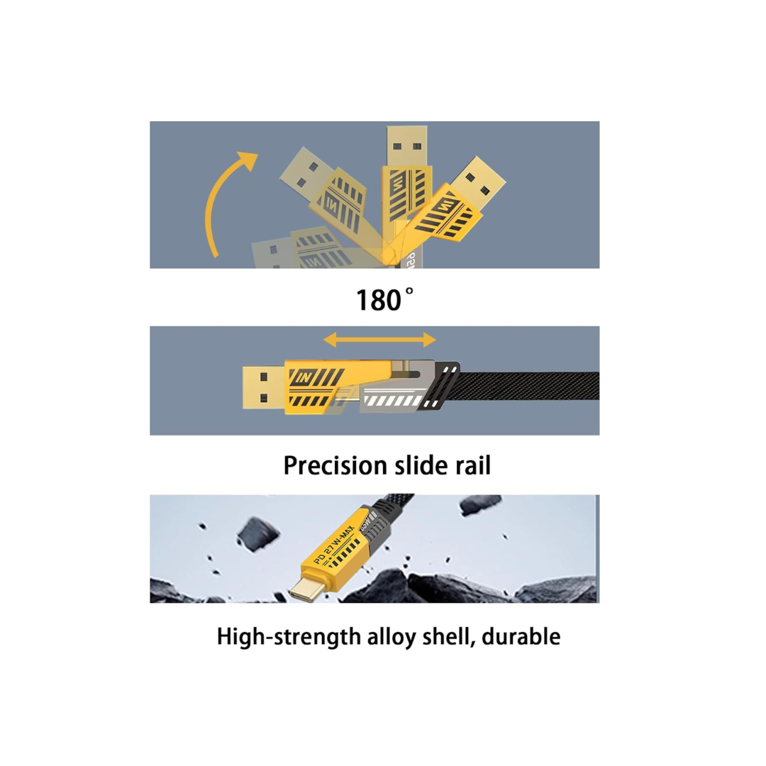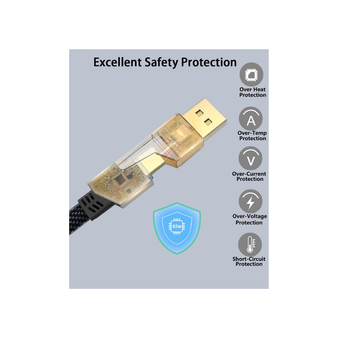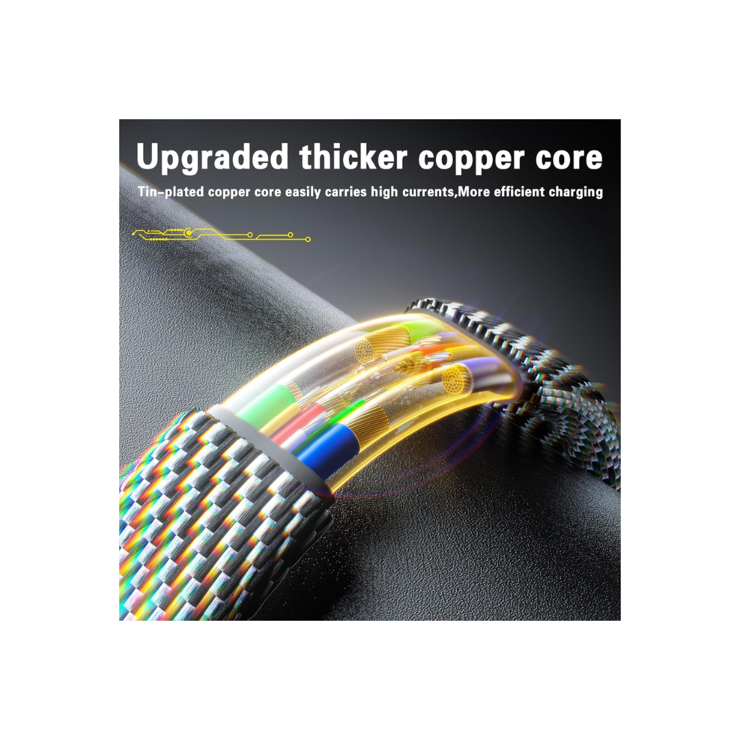 Built for long-term use, this multi USB charging cable features a braided nylon exterior and corrosion-resistant zinc alloy connectors, offering exceptional strength and durability. It’s been tested to withstand over 20,000 bends and plug-ins, making it ideal for everyday heavy use. The tangle-free construction ensures easy storage and a clutter-free workspace. Includes versatile charging options: USB-A/USB-C to Type-C (65W), USB-A to Lightning connector (12W), and USB-C to L connector (27W) for fast, flexible charging.