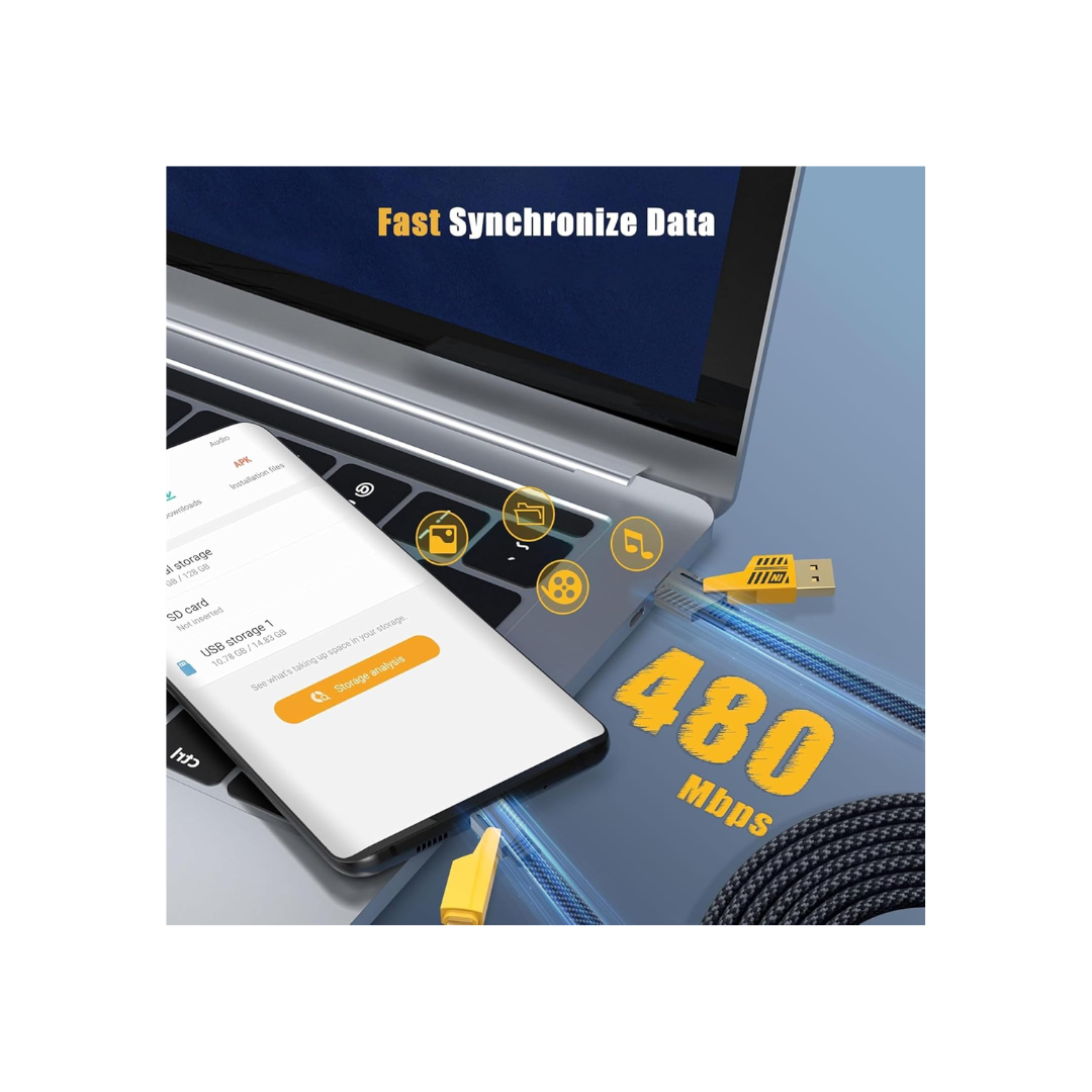 Experience high-speed file syncing with transfer rates up to 480Mbps, perfect for quickly moving documents, music, images, and videos between devices. Transfer a 1GB file in just 30 seconds, making slow data transfers a thing of the past. (Please note: This cable does not support video or media display output.)