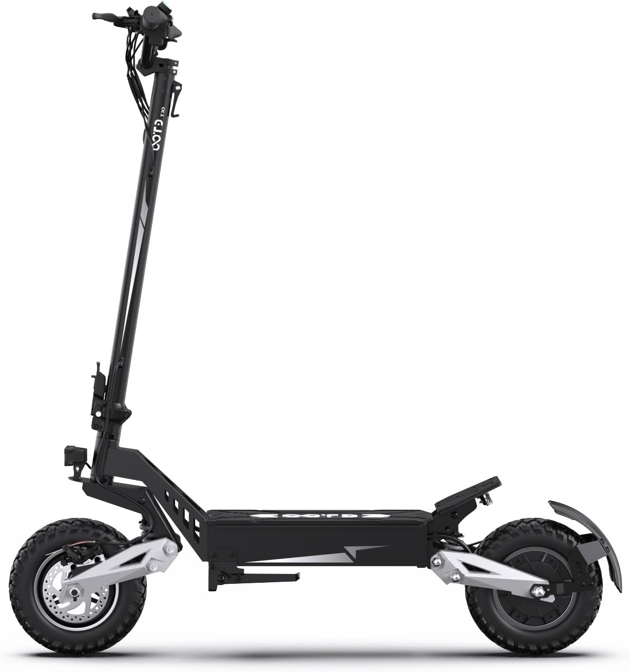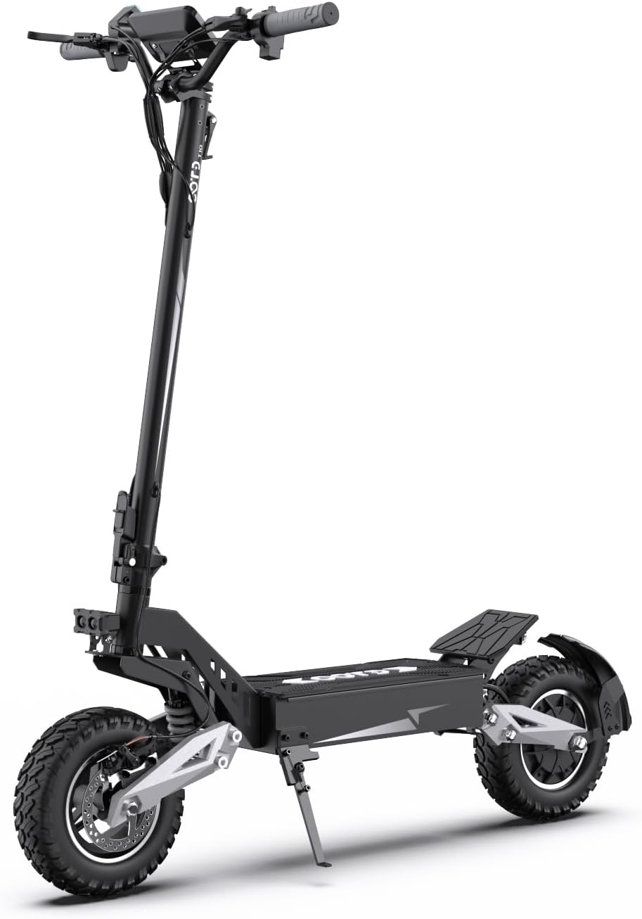 The 11-inch pneumatic tires provide excellent balance, traction, and shock absorption on various surfaces, while the dual suspension system reduces vibration for added comfort. Its reinforced frame offers strength and durability, supporting a higher weight capacity for adult riders.
